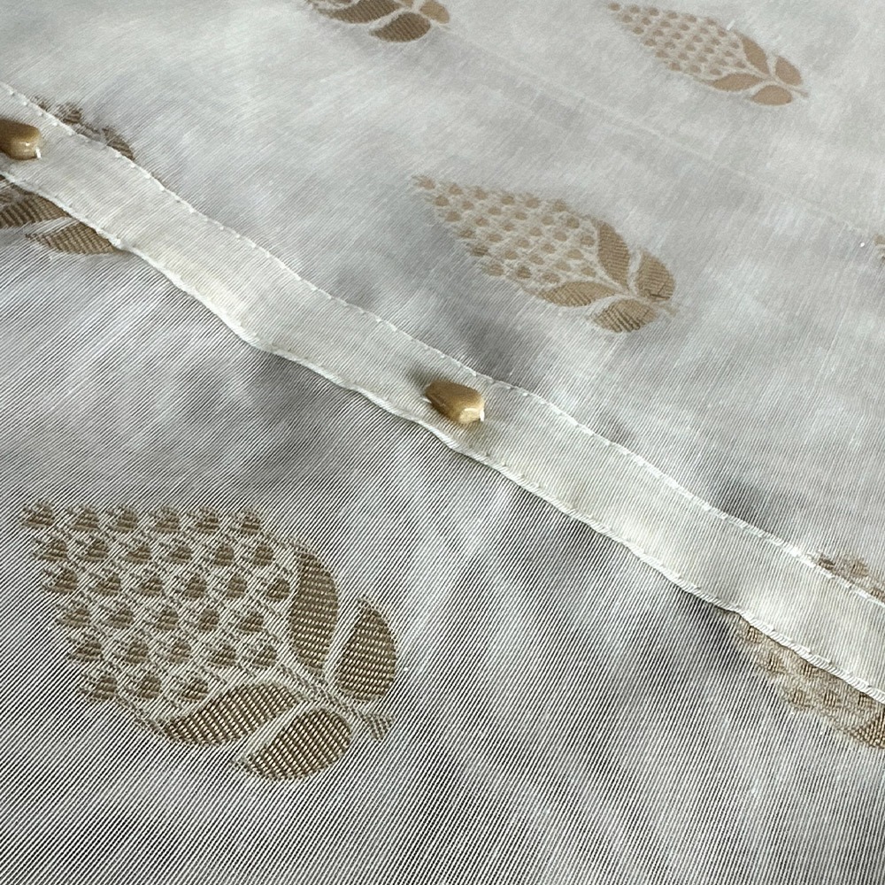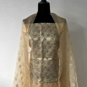 Unstitched Banarasi Pure Silk Material – Ivory & Gold