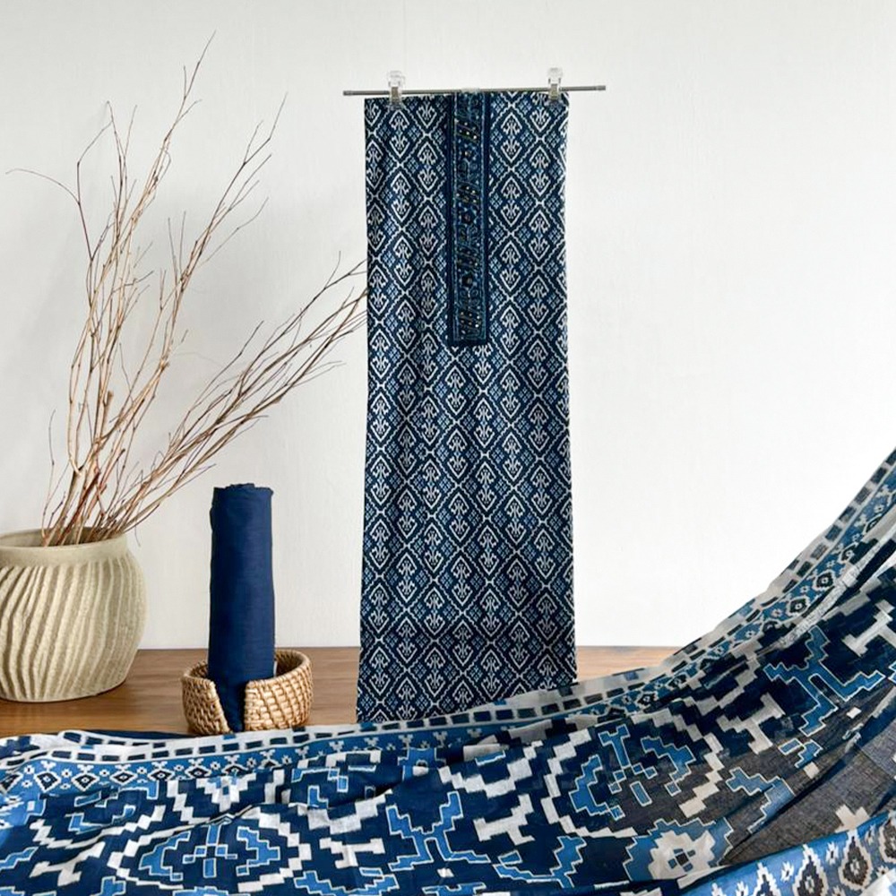 DEEP INDIGO PRINT – UNSTITCHED 3-PIECE MATERIAL SET