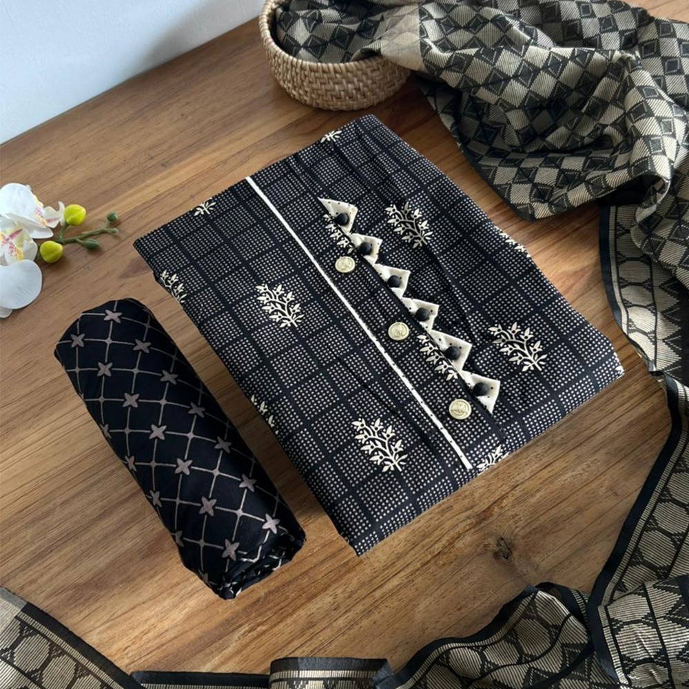 3 Piece Unstitched Material Set – Top | Pant | Dupatta