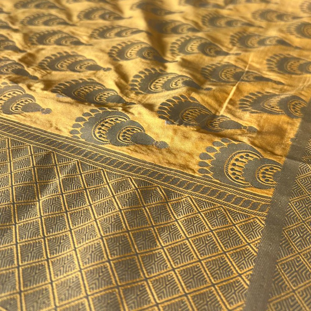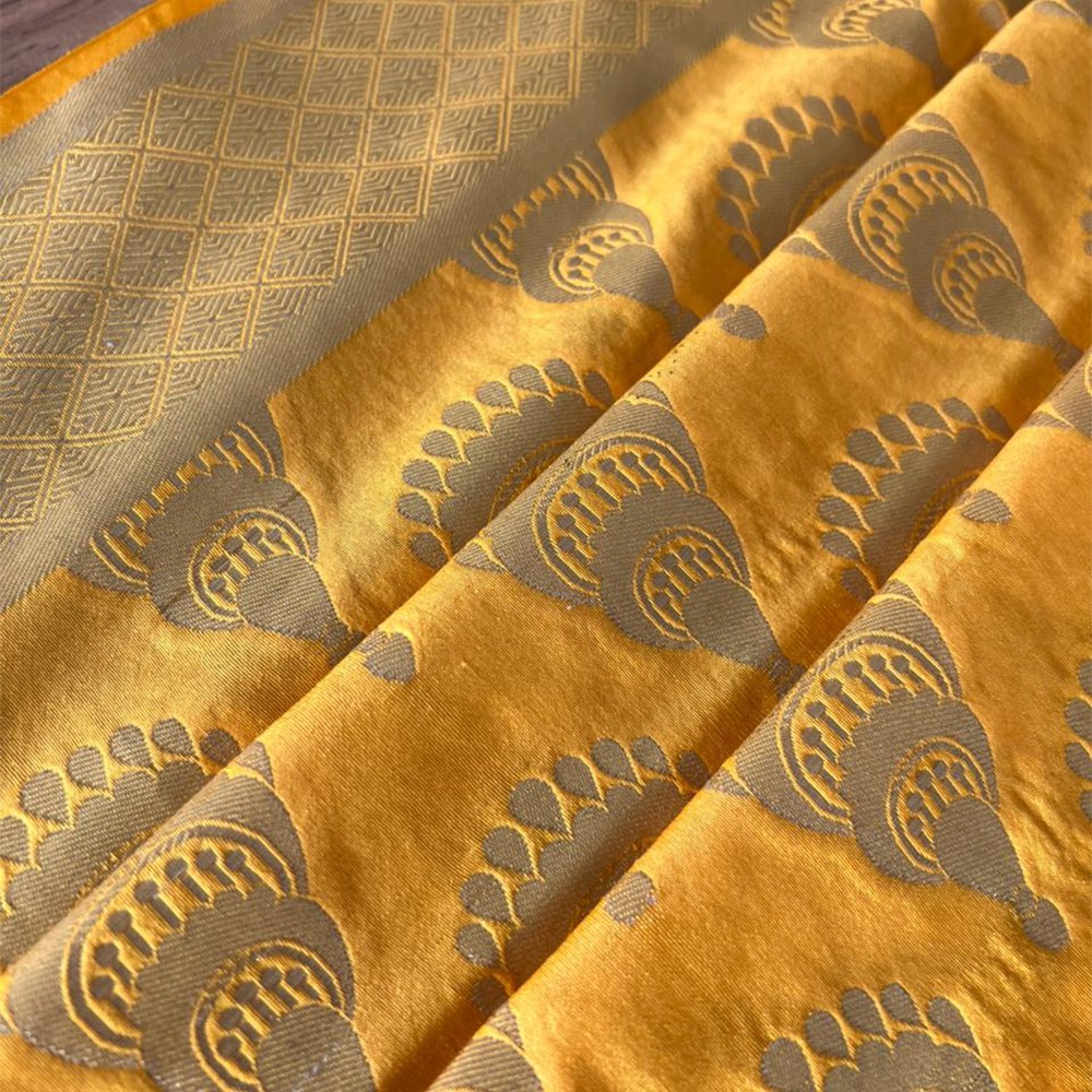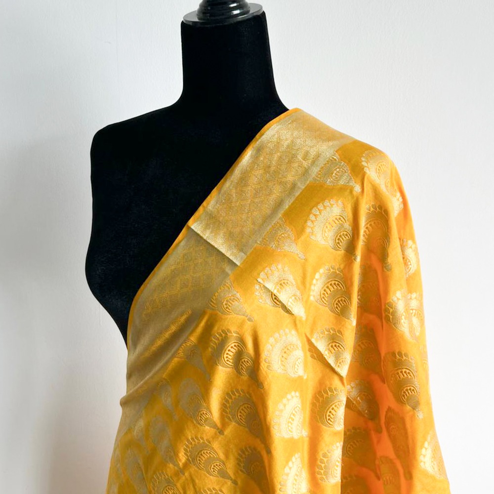 Woven in a deep mustard tone, this dupatta features traditional motifs and a shimmering zari border. Lightweight, festive, and ideal for styling up your wardrobe.