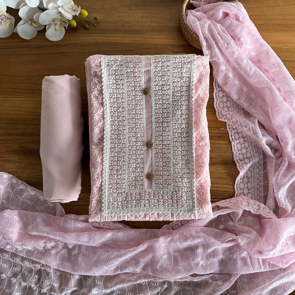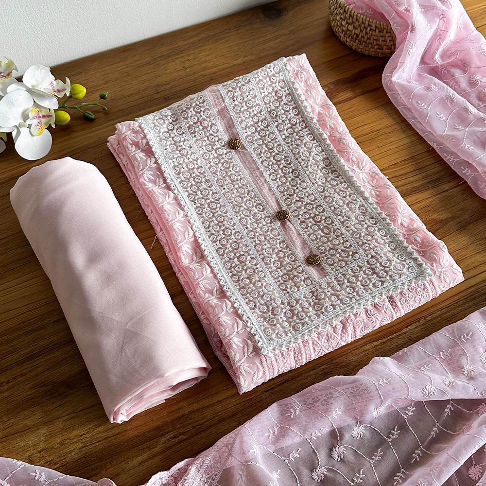 HomeUnstitchedEmbellished and EmbroideredSOFT PINK BLOOM – Unstitched 3-Piece Material Set