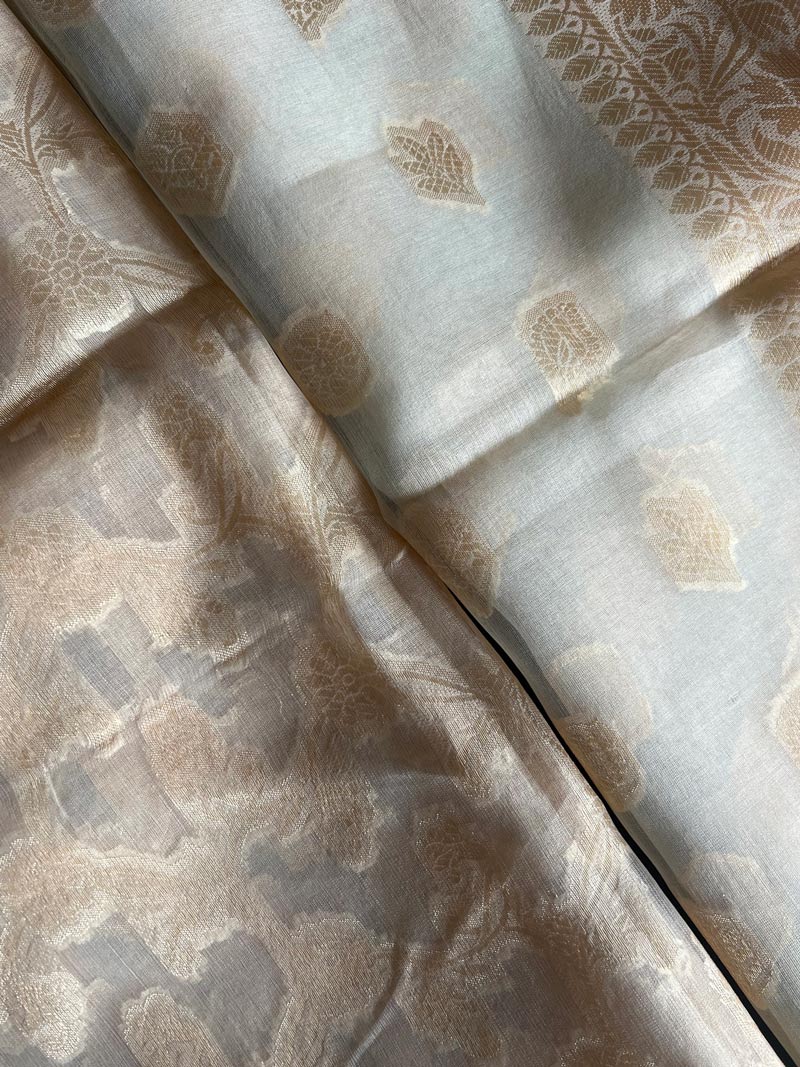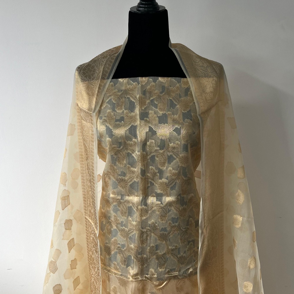 Unstitched Banarasi Pure Silk Material – Ivory & Gold