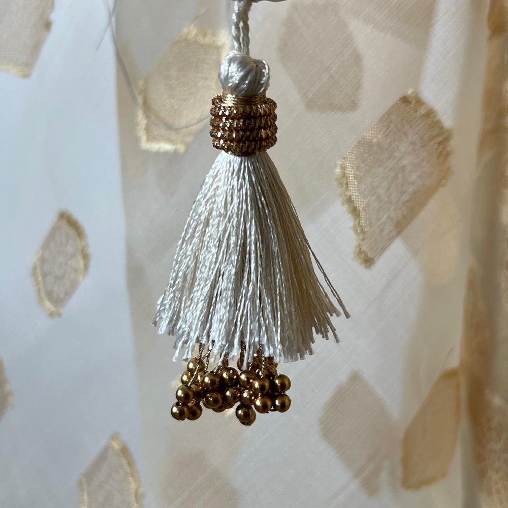Be the first to review “Unstitched Banarasi Pure Silk Material – Ivory & Gold” Cancel reply