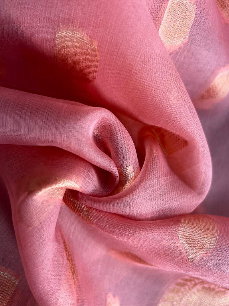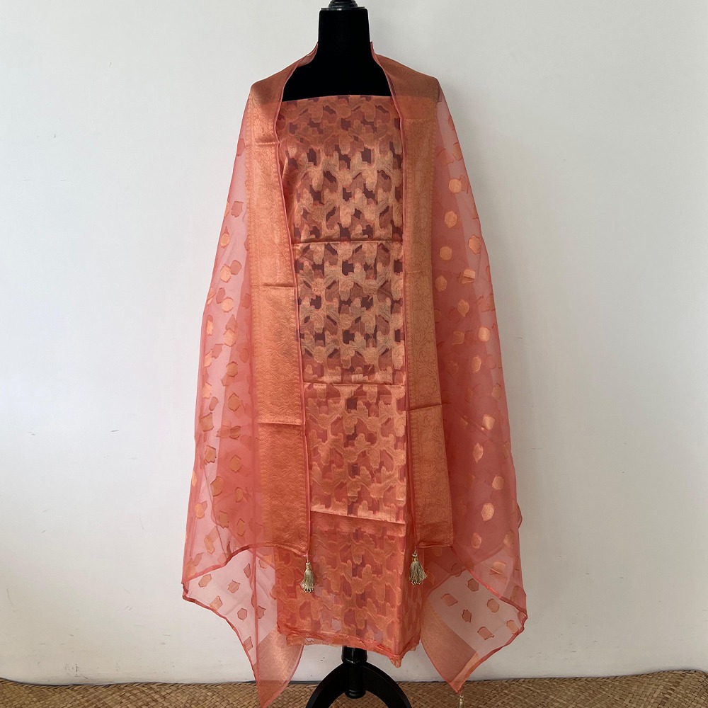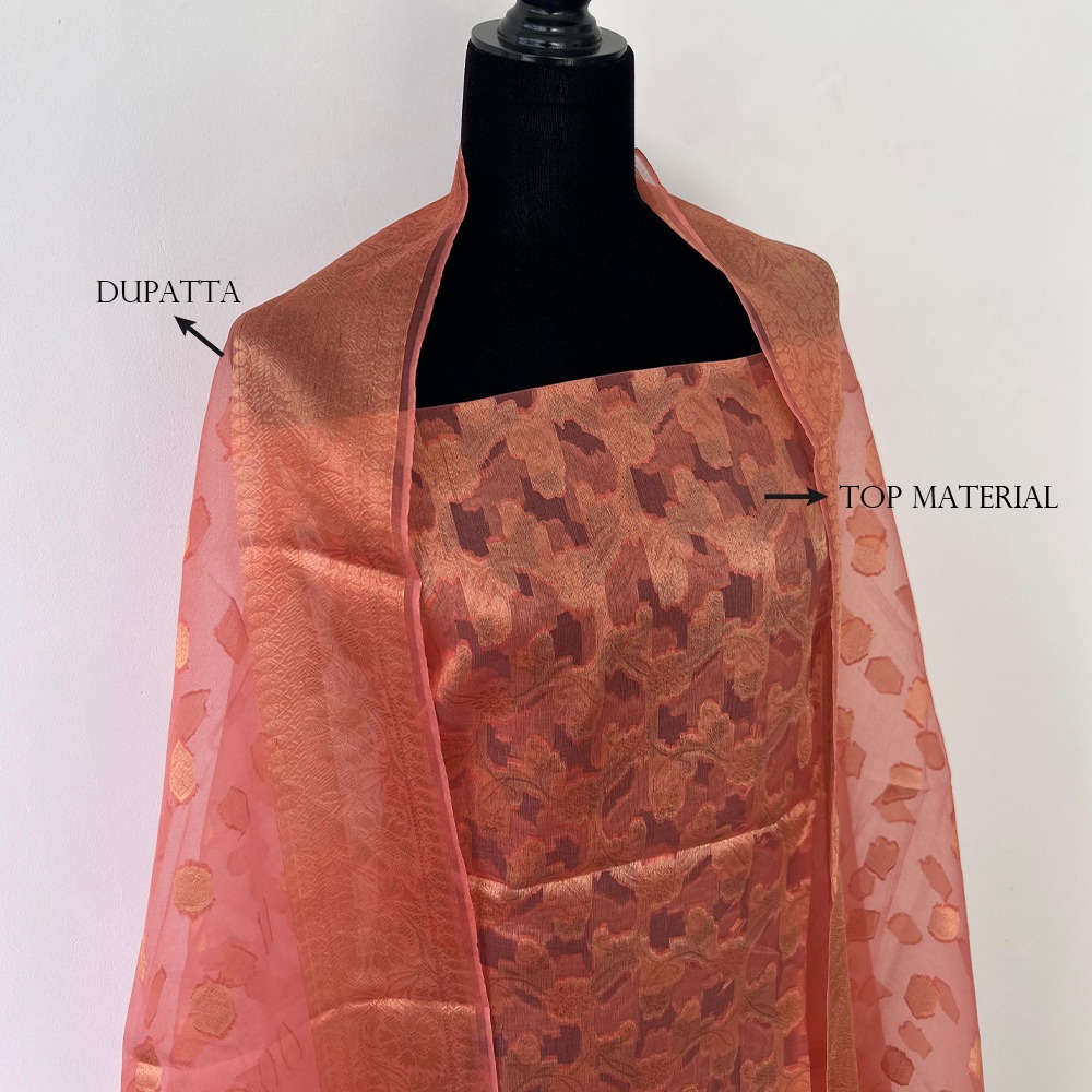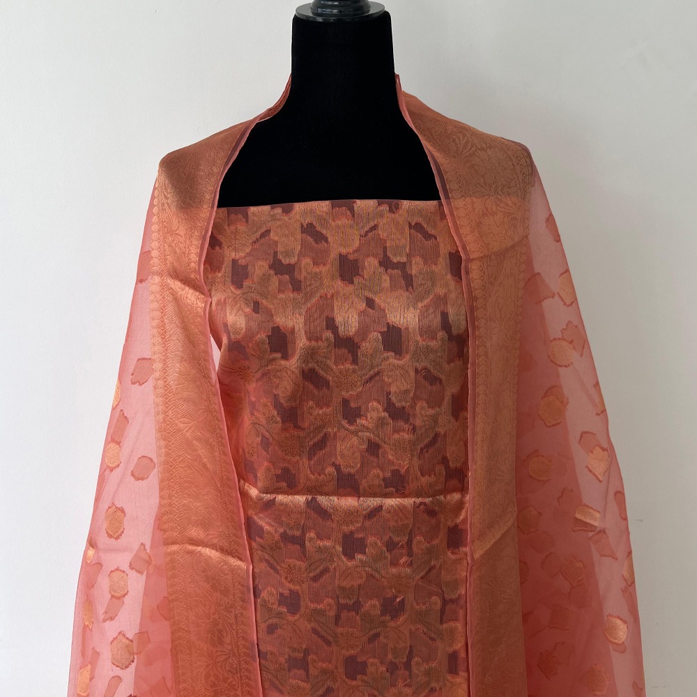 Unstitched Banarasi Pure Silk Material – Peach & Gold